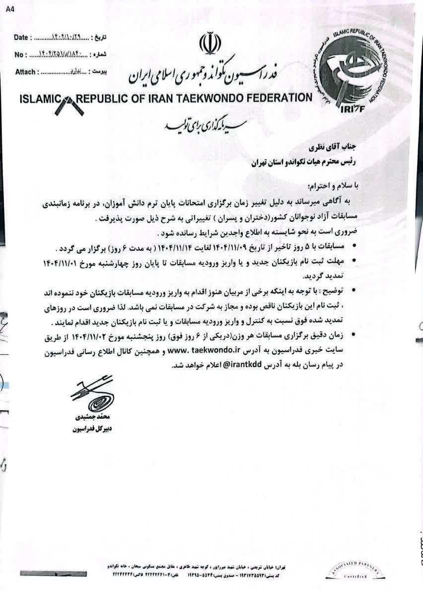 اطلاعیه تمدید و تعویض زمان مسابقات کشوری